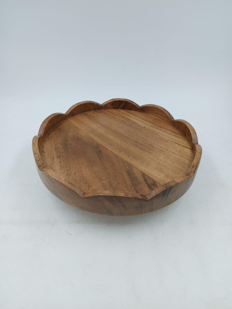 Elevate your tabletop with a piece that marries organic texture with playful design. Featuring a unique scalloped rim and a rich, natural wood finish, this dual-purpose essential works overtime. Use it as a heat-resistant trivet to protect your surfaces during dinner, or flip the script and use it as a shallow catch-all bowl for fruit, jewelry, or daily essentials.