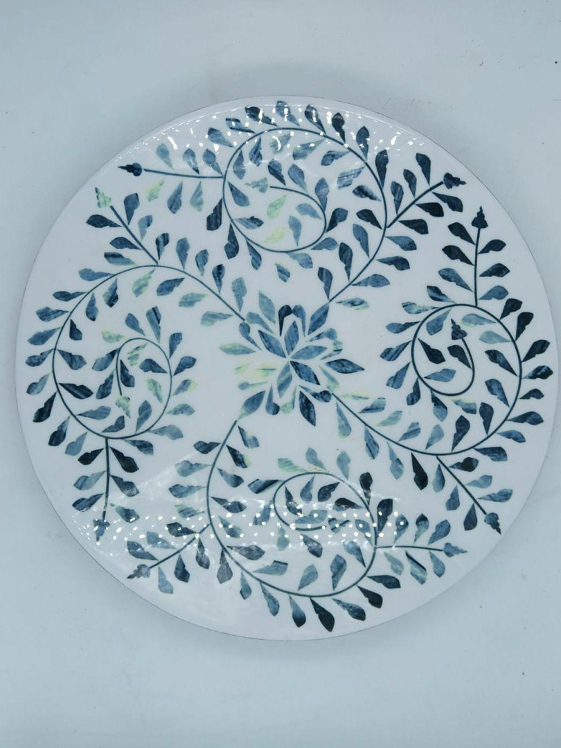 Elevate your dining experience with a perfect blend of artisanal craftsmanship and functional design. This stunning Lazy Susan is carved from premium, sustainably sourced acacia wood and finished with a mesmerizing blue vine inlay. Each leaf is meticulously placed to create a rhythmic, swirling pattern that draws the eye to the center of your table.